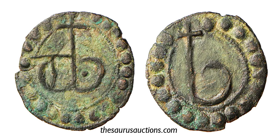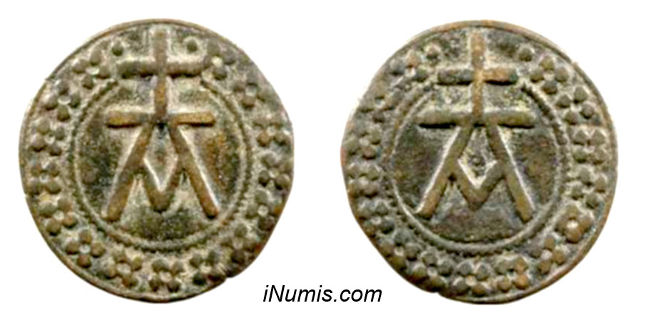 italian medi token jeton lombard au monogramme tessera mercantile gettone italský středověký žeton ficha medi italiano com monograma italiensk middelaldertegn Italiaans middeleeuws penning