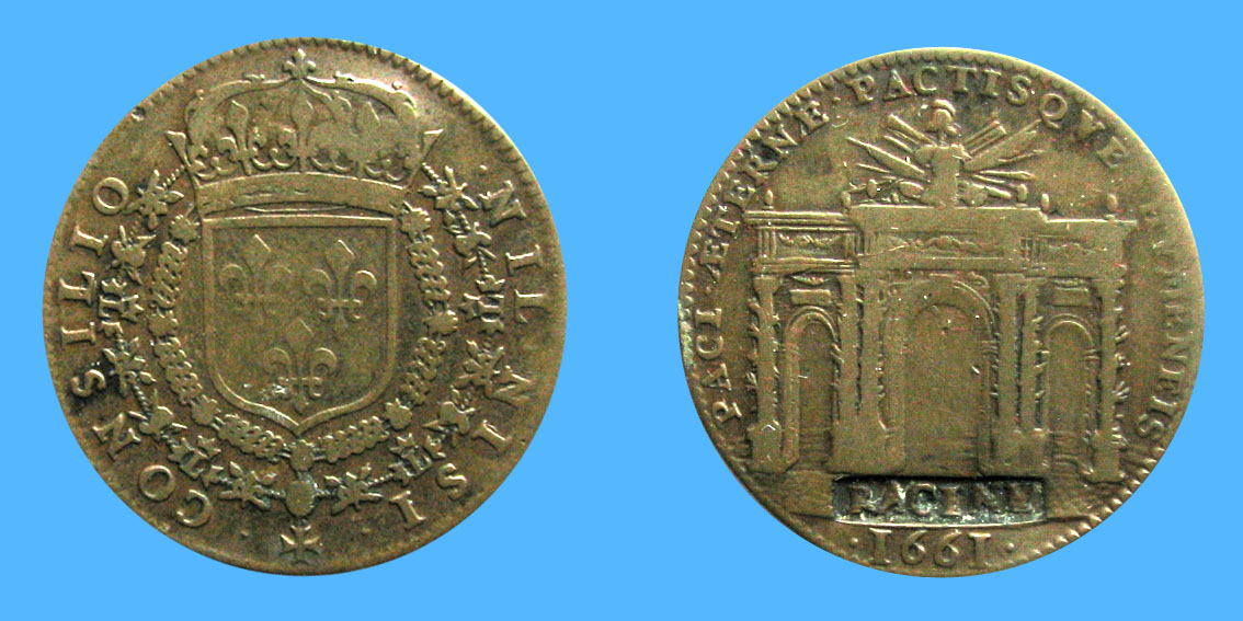 Arc Triomphe conseil royal 1661 royal council token königlichen Rates marken zeichen ficha del consejo real gettone del consiglio reale znak kráľovskej rady királyi tanács jelzője żeton rady królewskiej رمز شورای سلطنتی