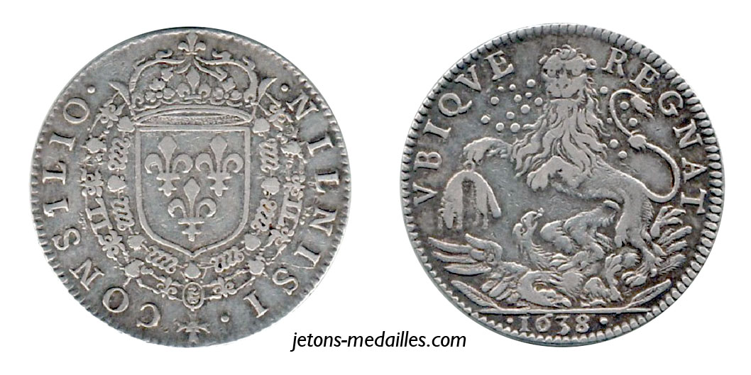 jeton 1638 laiton du conseil du roi brass token of the king's council rechenpfennig Messingzeichen des Königsrates gettone d'ottone del consiglio del re ficha de bronce del consejo del rey 国王会议的黄铜令牌