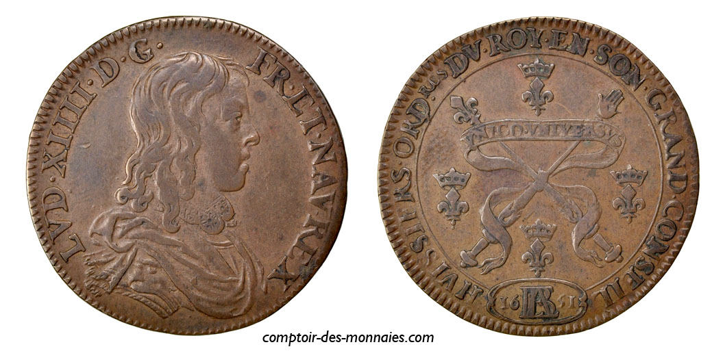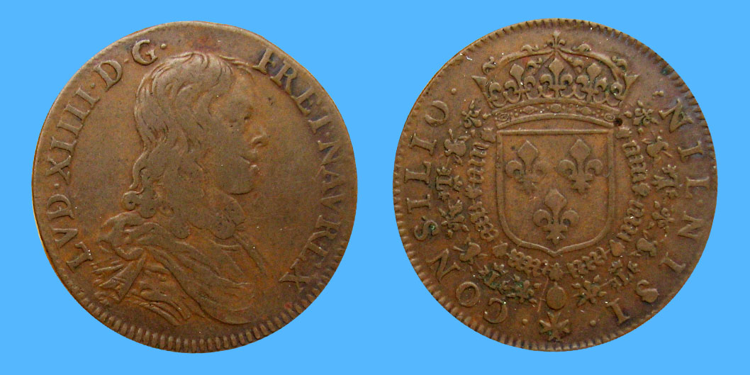 brass token of the king's council Louis XIV jeton laiton du conseil du roi mosiężny znak rady królewskiej ficha de bronce del consejo del rey mosazný žeton královské rady koperen penning van de raad van de koning