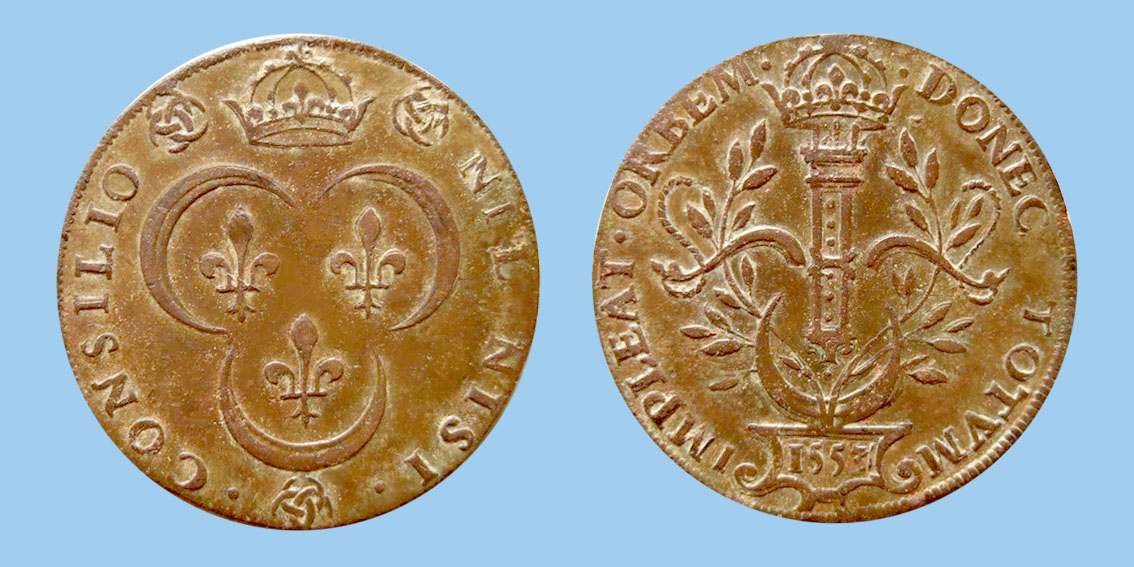 jeton cuivre du conseil du roi king's council copper token zeichen Kupfermünze des Königsrats ficha de cobre del consejo del rey koningsraad koperen penning gettone di rame del consiglio del re