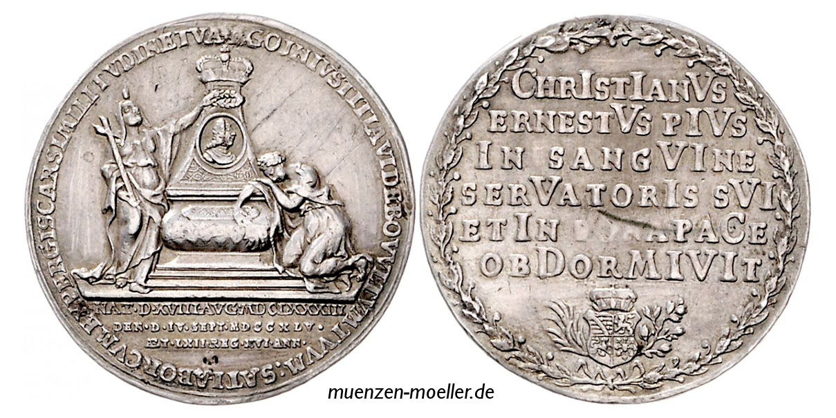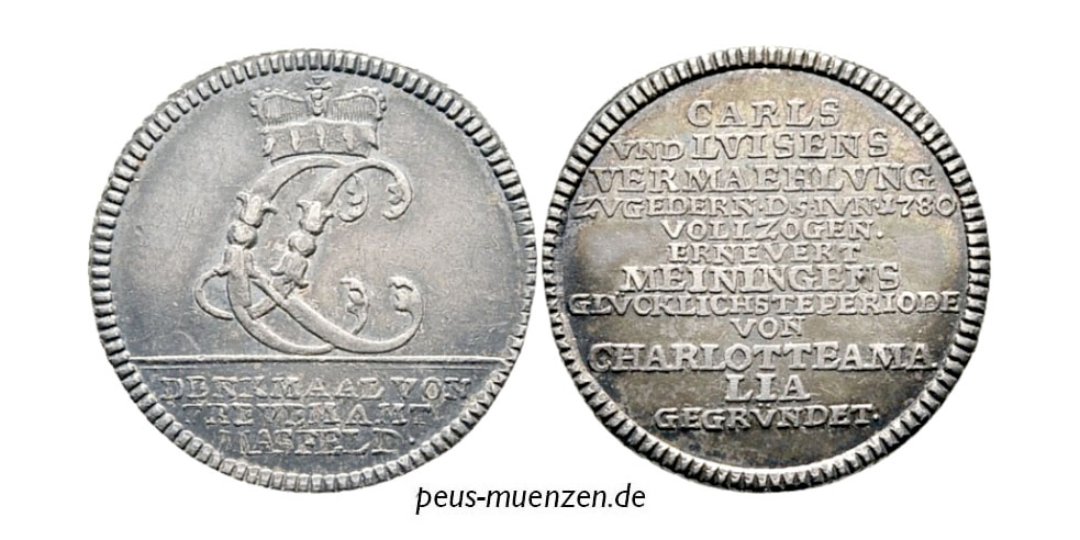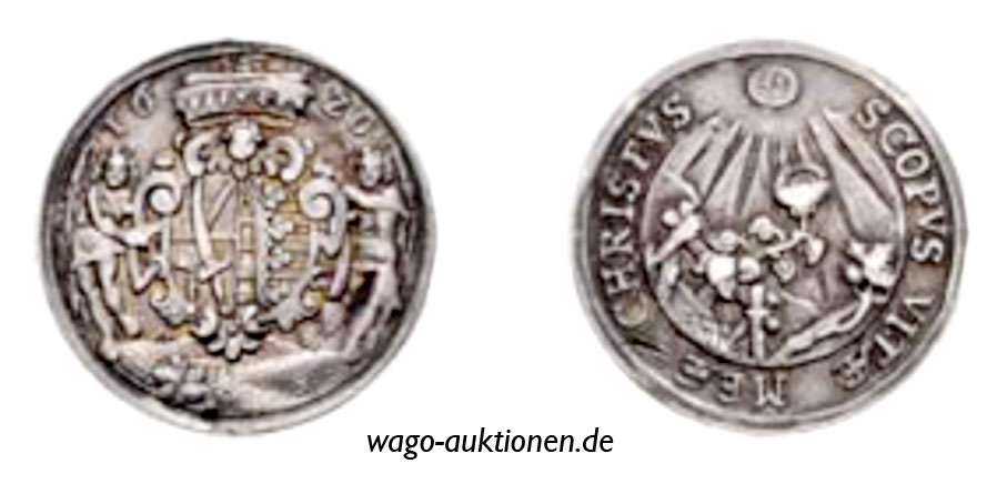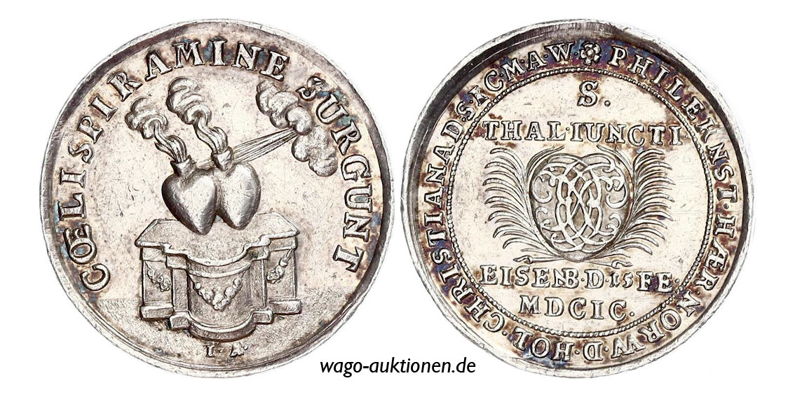 Zeichen der Hochzeit von Christiana von Sachsen-Eisenberg mit Philipp-Ernest von Holstein-Glücksburg ducal wedding token jeton de mariage madalha de casamento Gettone di nozze