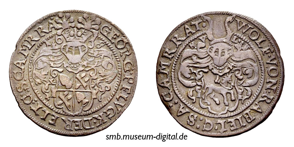 Zeichen von Johann Georg von Sachsen token of John George of Saxony jeton de Jean-Georges de Saxe Gettone di Giovanni Giorgio di Sassonia ficha de Juan Jorge de Sajonia známka Jana Jiřího Saského