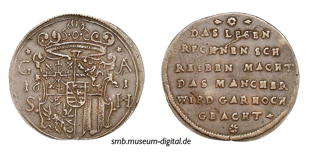 Zeichen von Johann Ernst von Sachsen-Weimar Rechenpfennig token of John Ernest of Saxe-Weimar jeton du duc Gettone di Giovanni Ernesto di Sassonia-Weimar pamiątka Jana Ernesta z Saksonii-Weimaru.