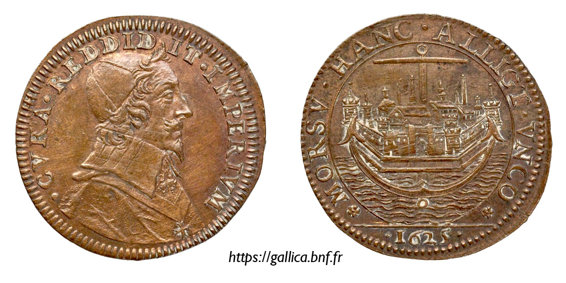 La Rochelle siège jeton royal token ficha de asedio de la ciudad Stadtbelagerungsmarker gettone d'assedio della città žetón obliehania mesta stadsbeleg penning jeton de asediu al orașului żeton oblężenia miasta város ostrom jelzője
