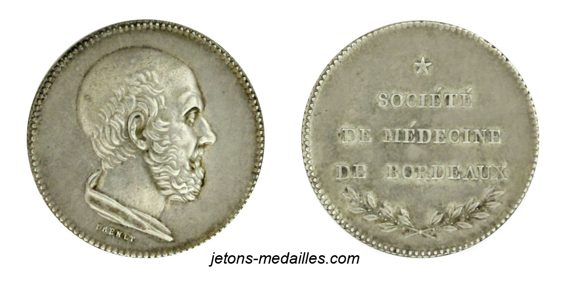 société medecine Bordeaux jeton hypocrate medical society token medizinischen Gesellschaft zeichen marken ficha de la sociedad de medicina gettone della società medica Medische samenleving penning رمز شركة الطب 医药公司代币