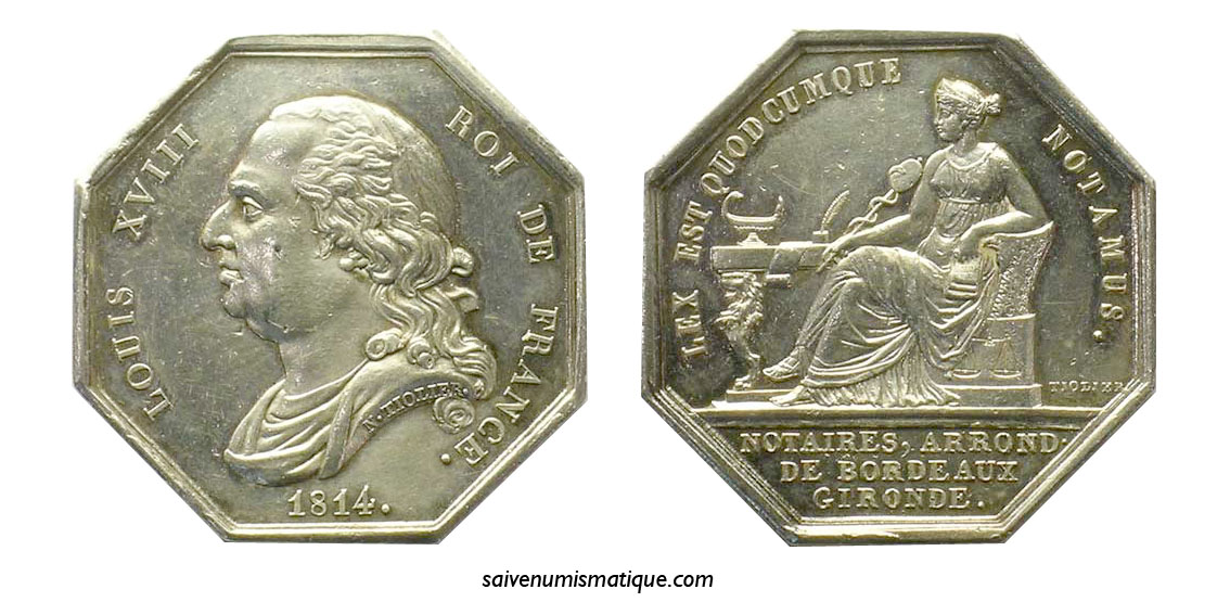 Aquitaine notaires Bordeaux jeton medaille notar-zeichen ficha medalla de notarios notaries token közjegyzők jelzője gettone medaglia dei notai notaris penning notaarin tunnus notartegn notarų ženklas жетон нотариуса 公證人令牌