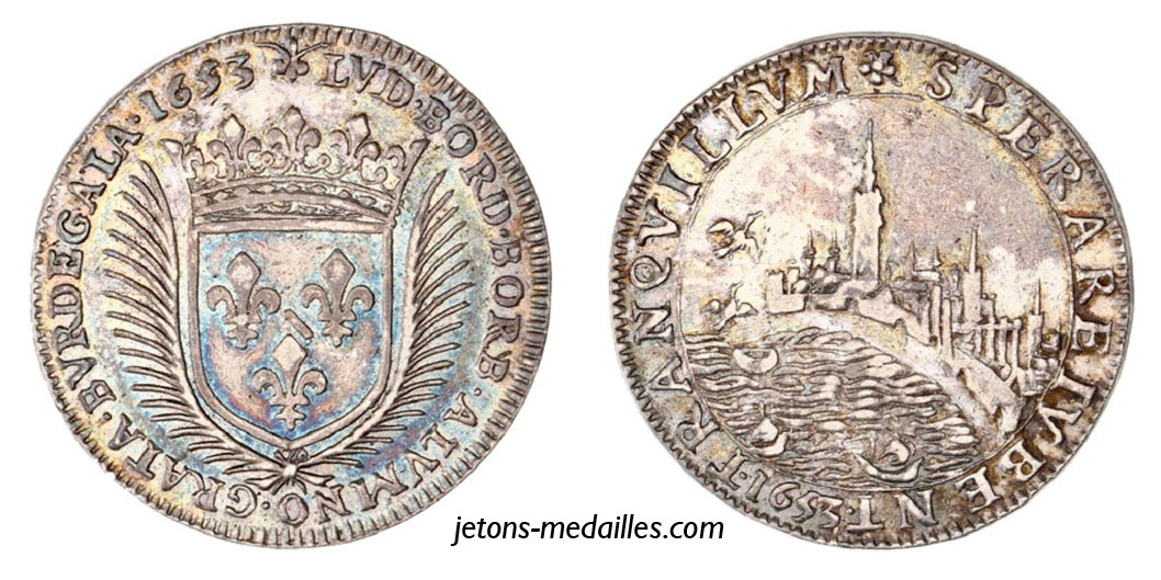 jeton de la Fronde à Bordeaux 1653 token of the insurrection movement Ficha del movimiento insurreccional Zeichen der Aufstandsbewegung mässuliikumise märk знак повстанческого движения