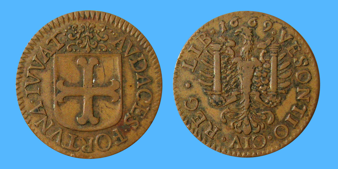 Besançon louis XIV jeton city conquest token Stadteroberungsmarker zeichen ficha de conquista de la ciudad marken gettone di conquista della città žetón dobytia mesta stadsverovering penning kaupungin valloitusmerkki