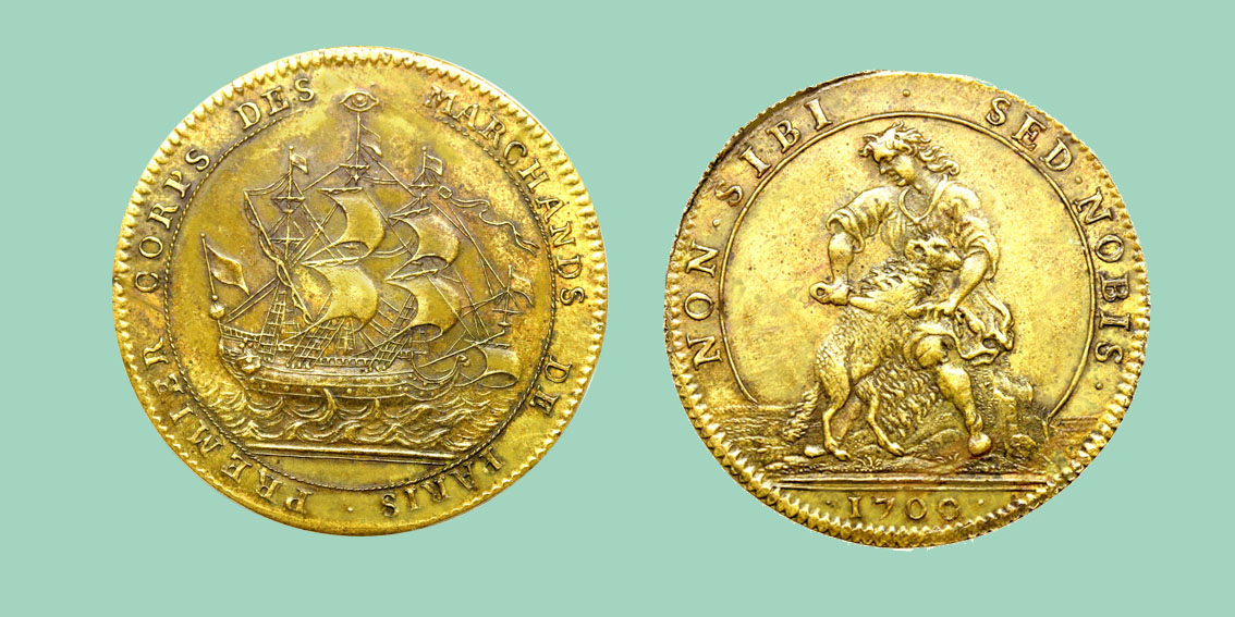premier corps des marchands jeton clothiers token medal ficha de los pañeros klederdracht penning Tuchmacher zeichen marken medaglia gettone dei vestiti soukenický žeton platneni žeton ένδειξη υφασμάτινων жетон суконщика