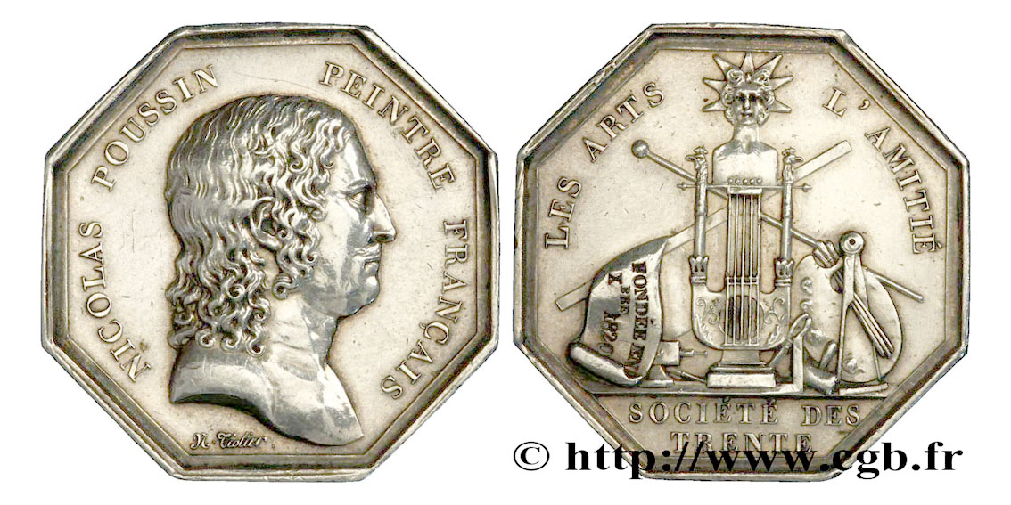 Nicolas Poussin société des trente jeton médaille arts academy token medal ficha medalla de la academia de artes Kunstakademie zeichen marken gettone dell'accademia delle arti kunstacademie penning sanat akademisi jetonu