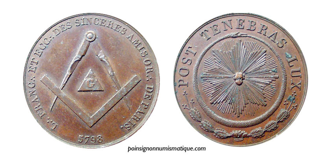 jeton freimaurerisches Zeichen masonic token medal szabadkőműves jelző ficha medalla masónica vrijmetselaar penning slobodomurársky žetón frimureritoken gettone medagllia massone жетон за масони