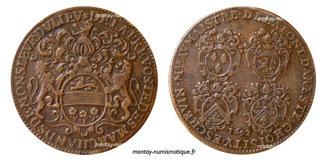 jeton Neufville de Villeroy gouverneur de Lyon city governor's token penning van de stadsgouverneur ficha del gobernador de la ciudad gettone del governatore della città žeton městského guvernéra