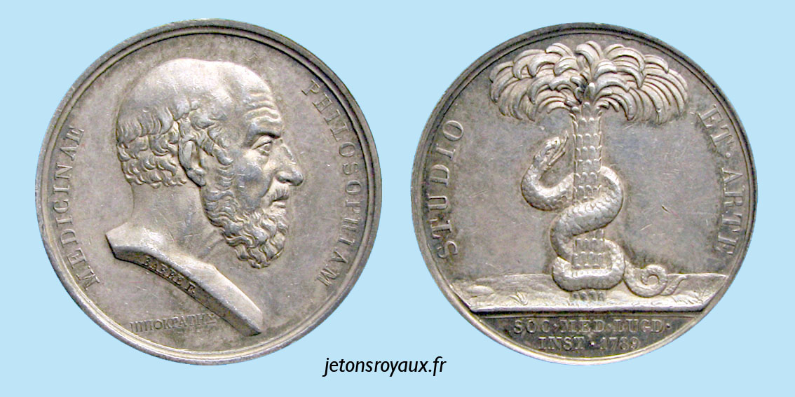 Lyon medical society token medal jeton Hippocrates medizinischen Gesellschaft der Stadt zeichen ficha de la sociedad médica de la ciudad gettone della società medica della città zeton medaille жетон городского медицинского общества