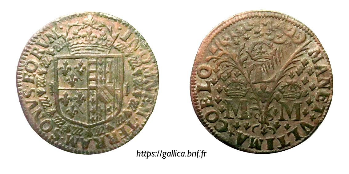 jeton du duc de Bourbon-Montpensier Brass duke token Ficha de duque de latón Hertigens mässingspollett Rechenpfennig des Herzogs aus Messing gettone d'ottone del duca vévodův mosazný žeton Герцогский медный жетон