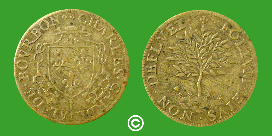 Charles cardinal de Bourbon jeton Archbishop token ficha de arcebispo Gettone dell'arcivescovo Erzbischof zeichen Ärkebiskopens symbol Tegn for kardinal Burbonas kardināla žetons Жетон кардинала Бурбонського 波旁红衣主教的令牌
