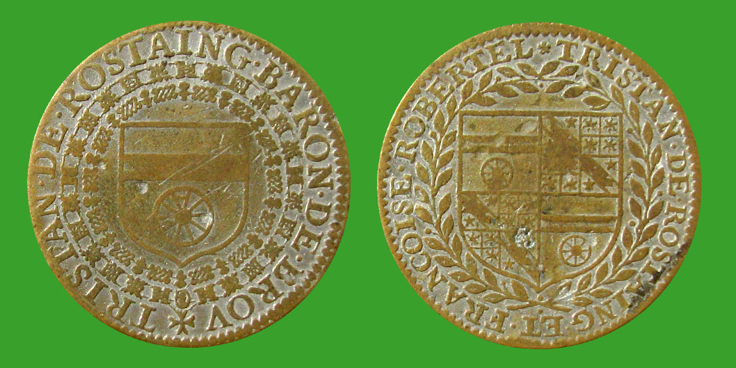 Tristan de Rostaing baron Brou jeton nobility token Adelszeichen ficha de barón gettone del barone medalha do barão mã báró jelzője comhartha barúin barona žetons paronin merkki thông báo của nam tước жетон барона