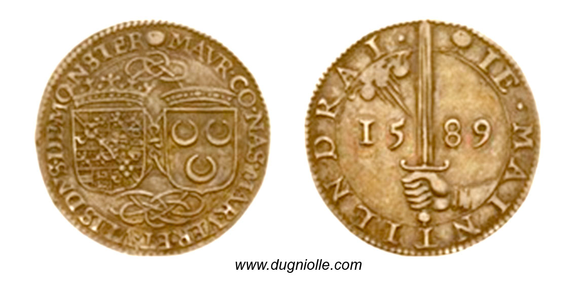 Provinces-Unies jeton du comte Maurice d'Orange-Nassau Verenigde Provinciën penning van graaf Maurits van Oranje-Nassau Ficha de Provincias Unidas del Conde Mauricio Förenade provinsernas symbol för greve Maurice