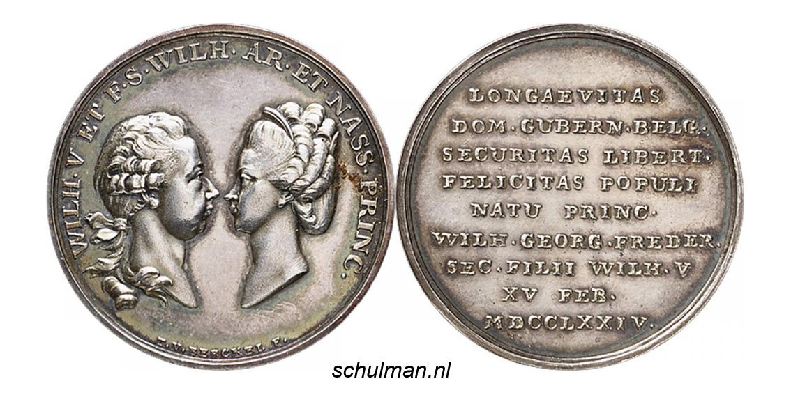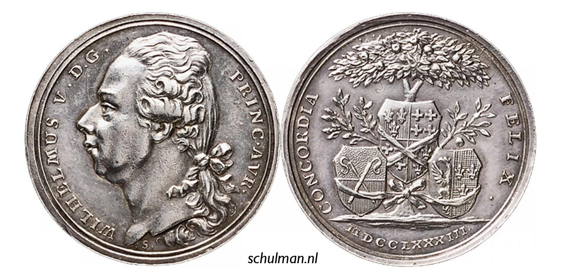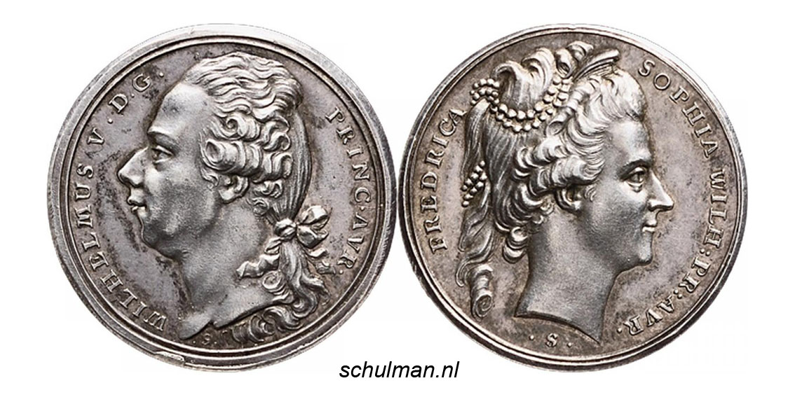 Willem V Batavus prins van Oranje penning Wilhelmina van Pruisen medal token jeton médaille Guillaume V d'Orange-Nassau Sophie-Wilhelmine de Prusse ficha medalha Guilhermina da Prússia Жетон за медаљу Вилхелмине од Пруске